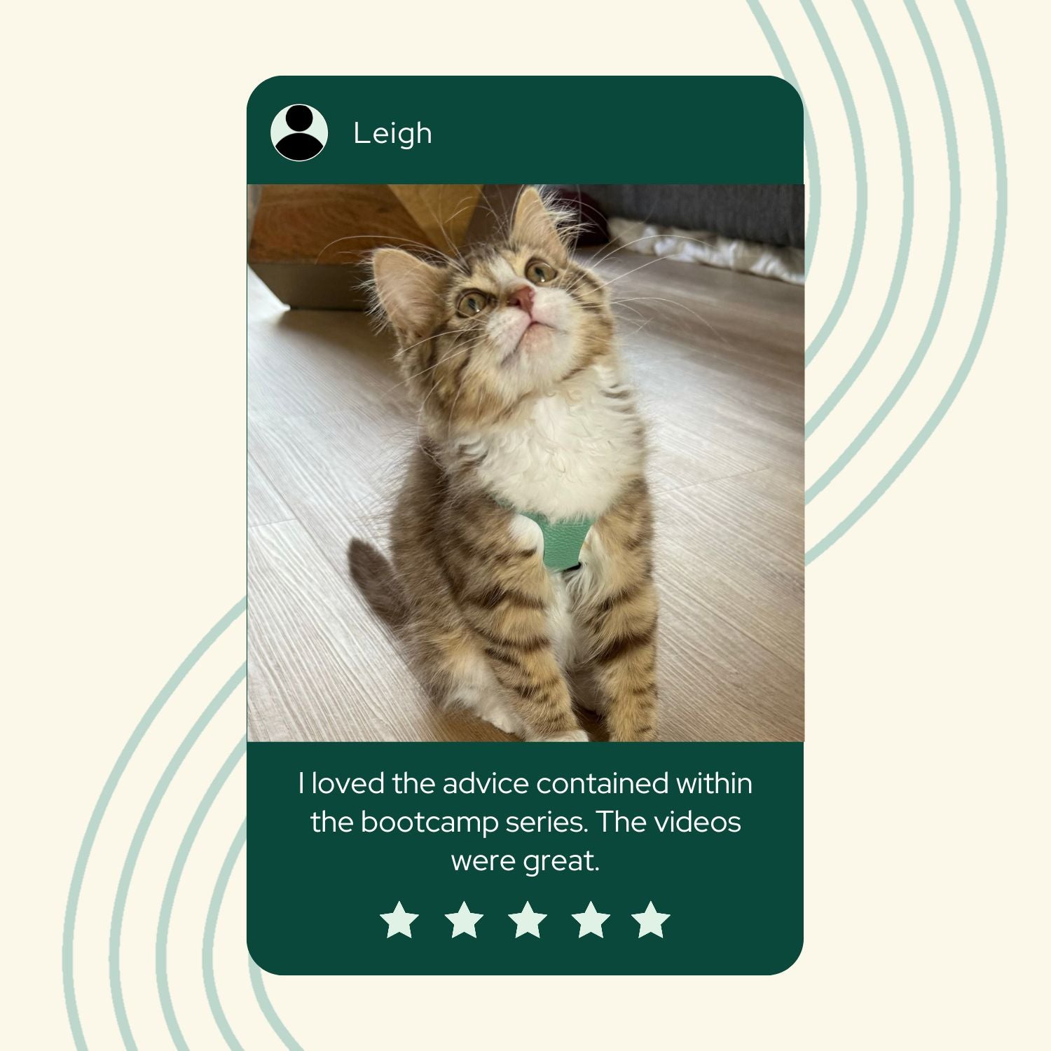 Once your cat is comfortable in their harness, you can continue building their skills with our Complete Cat Harness Training Course. Master walking outdoors, recall, backpack training and more, all with expert guidance and fun daily exercises.